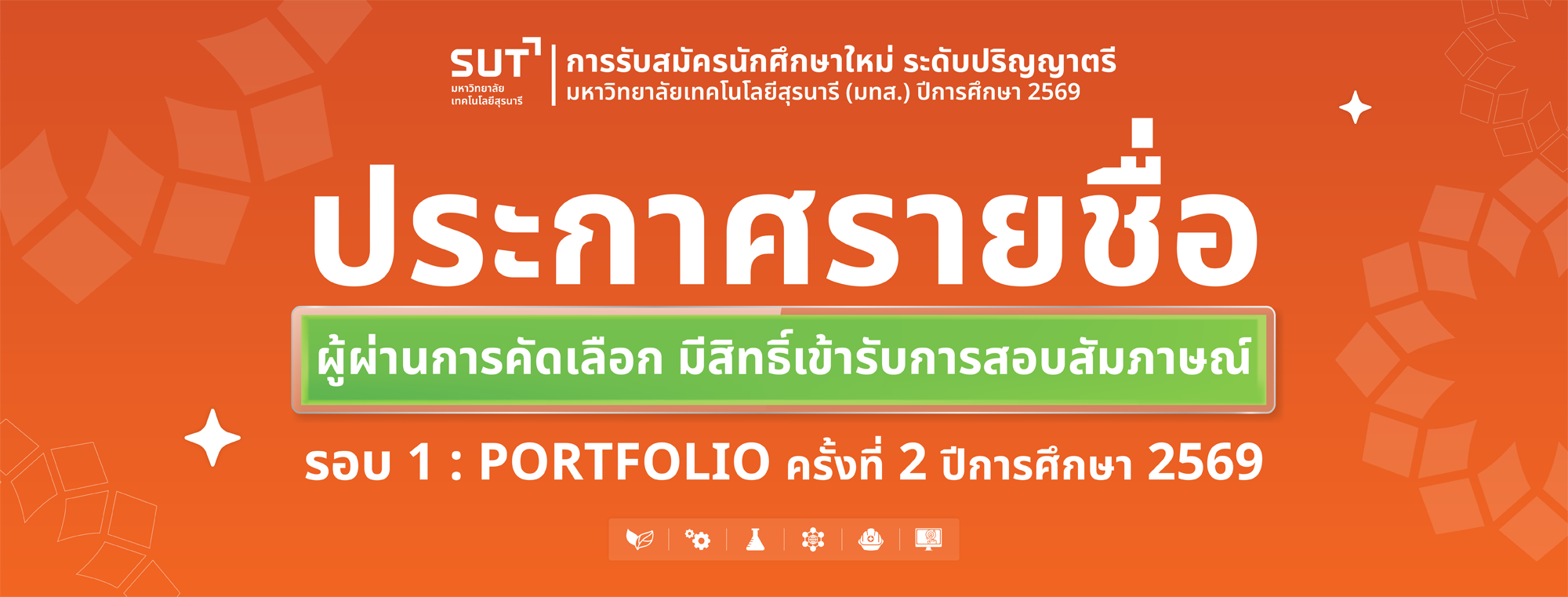 - มทส. คว้ารางวัลสถาบันต้นแบบ “บัณฑิตพันธุ์ใหม่” ตอกย้ำความเป็นเลิศด้านระบบการติดตามประเมินผล หัวใจหลักในการสร้างกำลังคนสมรรถนะสูง 25 กุมภาพันธ์ 2569