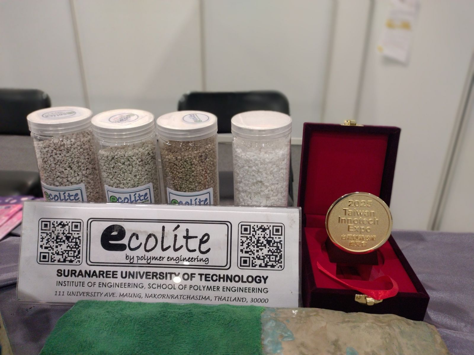 Suranaree University of Technology (SUT) proudly congratulates Asst. Prof. Dr. Uthai Meekham, Lecturer in Polymer Engineering, School of Engineering, for winning the Gold Medal Award for his outstanding innovation “Ecolite: Transforming PS Foam Waste into Lightweight Construction Material” at the Taiwan Innotech Expo 2025 (TIE2025), an international exhibition and competition of research, inventions, and innovations, held from October 16–18, 2025, at the Taipei World Trade Center, Taipei, Taiwan.