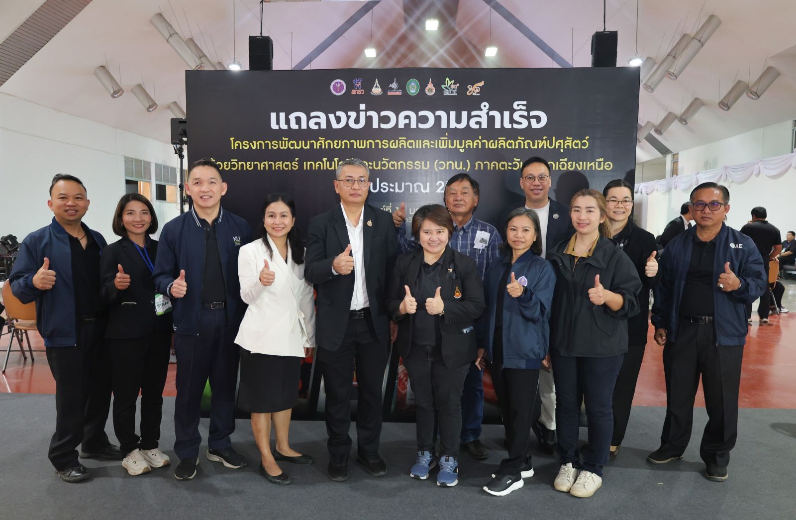 มหาวิทยาลัยเทคโนโลยีสุรนารี (มทส.) แถลงความสำเร็จ “โครงการพัฒนาศักยภาพการผลิตและเพิ่มมูลค่าผลิตภัณฑ์ปศุสัตว์ ด้วยวิทยาศาสตร์ เทคโนโลยีและนวัตกรรม (วทน.) ประจำปีงบประมาณ พ.ศ. 2568” ยกระดับศักยภาพของเกษตรกรและผู้ประกอบการภาคปศุสัตว์ในพื้นที่ภาคตะวันออกเฉียงเหนือ ให้สามารถพึ่งพาตนเองและแข่งขันได้ในระดับสากล โดยใช้ วทน. เป็นกลไกขับเคลื่อนตลอดห่วงโซ่คุณค่า มีผลผลิตที่สำคัญตั้งแต่ “ต้นน้ำ” ในการเพิ่มประสิทธิภาพการผลิต อาทิ ส่งเสริมการใช้ Digital Platform จัดอบรมและสร้างเครือข่ายผู้เลี้ยงโคพรีเมียม จัดตั้งศูนย์ผลิตอาหารสัตว์ TMR คุณภาพสูง 2 แห่ง ในพื้นที่จังหวัดนครราชสีมาและจังหวัดมุกดาหาร “กลางน้ำ” ในการสร้างมูลค่าเพิ่ม อาทิ พัฒนากระบวนการแปรรูปผ่านโรงเชือดมาตรฐาน GMP โรงงานแปรรูปที่ได้มาตรฐาน GMP อย. และฮาลาล เกิดผลิตภัณฑ์นวัตกรรมต้นแบบ 20 ผลิตภัณฑ์ เข้าสู่กระบวนการขอรับรองมาตรฐาน 18 ผลิตภัณฑ์ และผลิตภัณฑ์ที่เข้าสู่เชิงพาณิชย์ 4 ผลิตภัณฑ์ ได้แก่ น้ำมันเนื้อรสพริกเผา น้ำพริกเนื้อกรอบรสต้มยำ หม้อไฟหมาล่าเนื้อโคขุน และเนื้อโคขุนแผ่นอบกรอบ สำหรับ “ปลายน้ำ” เน้นการขยายโอกาสทางการตลาด จัดตั้งศูนย์จำหน่ายผลิตภัณฑ์ 3 แห่ง รวมถึงดำเนินการทดสอบตลาดและสร้างกลไกการจับคู่ธุรกิจทั้งในและต่างประเทศ เพื่อเตรียมความพร้อมสู่การผลิตเชิงพาณิชย์อย่างเต็มรูปแบบ